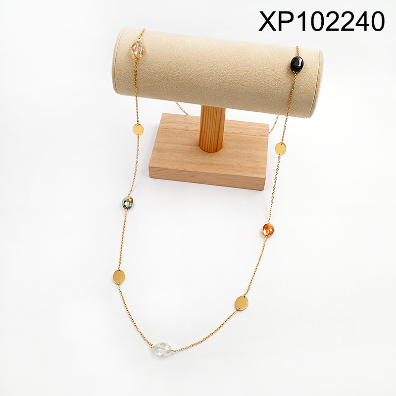 Level A Stainless Steel New Trendy Women Jewelry Mixed color Glass Oval Golden Sweater Chain Pendant