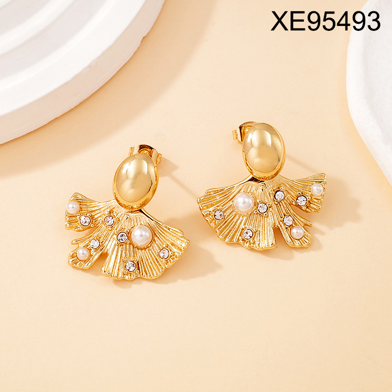 Level B Stainless Steel New Trendy Women Jewelry Pearl Style/Plastic Beads Oval Ginkgo leaf Golden Earrings