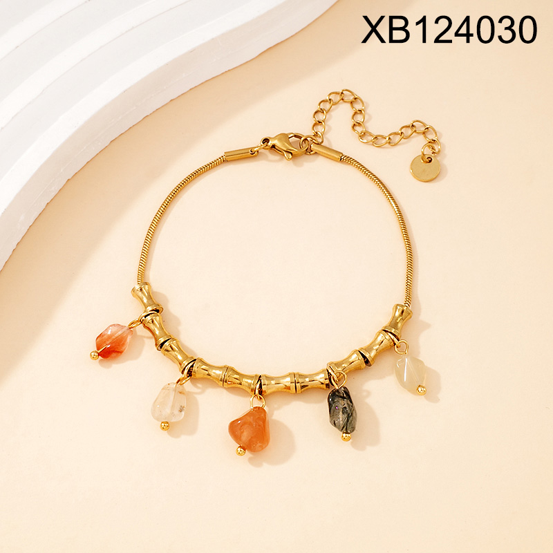 Home > Level B Stainless Steel New Trendy Women Jewelry Natural Stone Golden Bracelet