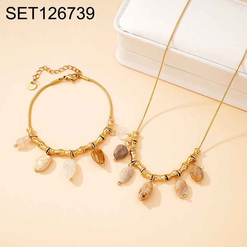 Home > Level B Stainless Steel New Trendy Women Jewelry Natural Stone Golden Chain SET