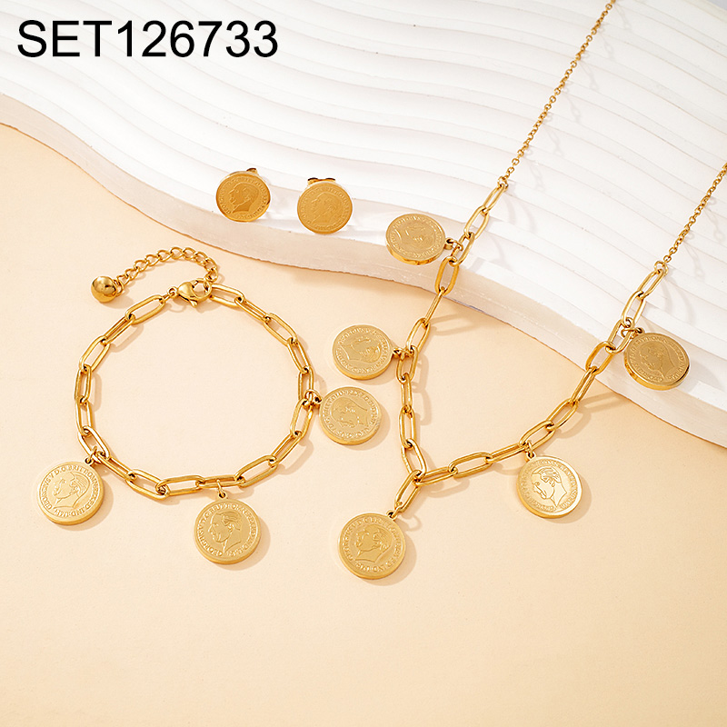 Level A Stainless Steel New Trendy Women Jewelry Coin People Golden 3pcs SET
