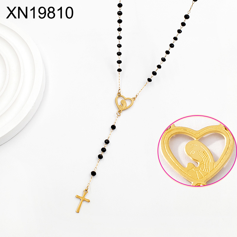 Level B Stainless Steel New Trendy Women Jewelry Bead Chain Religion Cross Golden Necklace