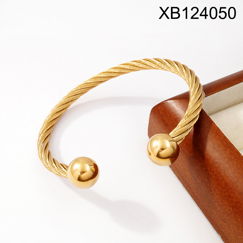 Level B Stainless Steel New Trendy Women Jewelry Golden Open Wire Bangle;Bangle size can be adjusted freely