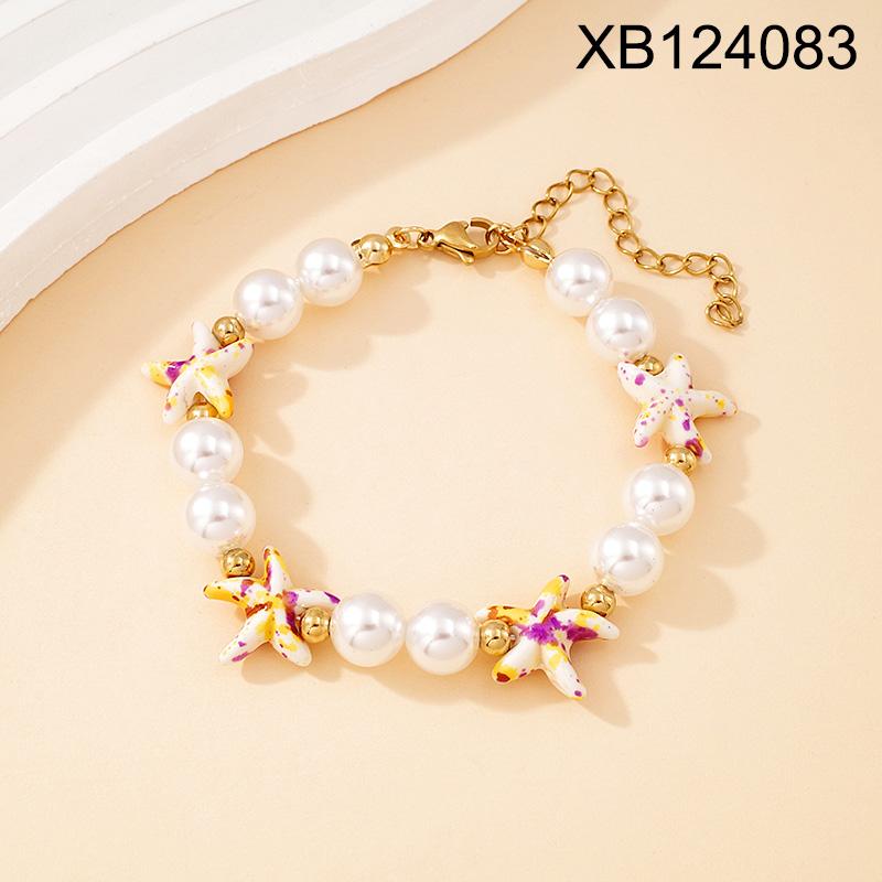 Level B Stainless Steel New Trendy Women Jewelry Pearl Style/Plastic Beads Summer beach Animal Starfish Golden Bracelet