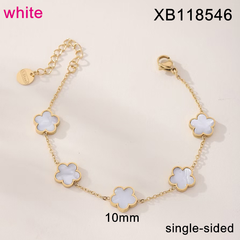 Level B Stainless Steel New Trendy Women Jewelry White Single-sided Flower Golden Bracelet