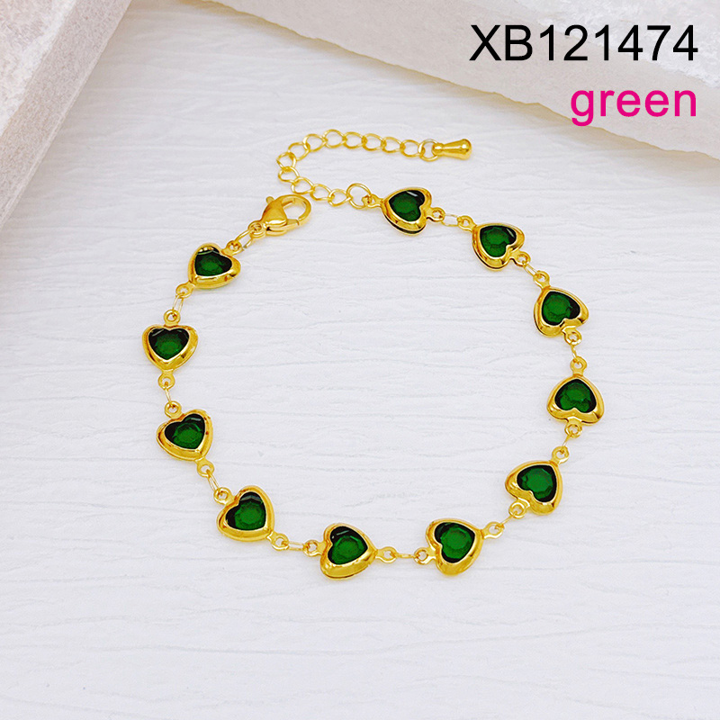 Level B Stainless Steel New Trendy Women Jewelry Green Glass Heart Golden Mother's Day Bracelet