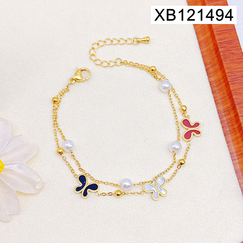 Level B Stainless Steel New Trendy Women Jewelry Pearl Style/Plastic Beads Two Layers Chain Animal Butterfly Golden Bracelet