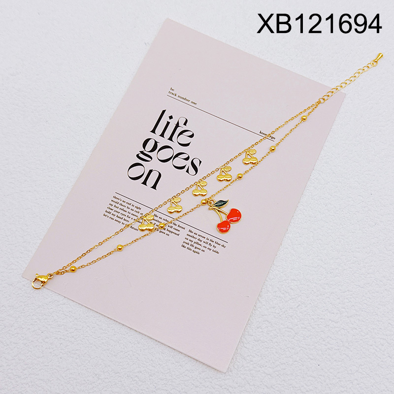 Home > Level B Stainless Steel New Trendy Women Jewelry Two Layers Chain Summer fruit style Cherry Golden Bracelet