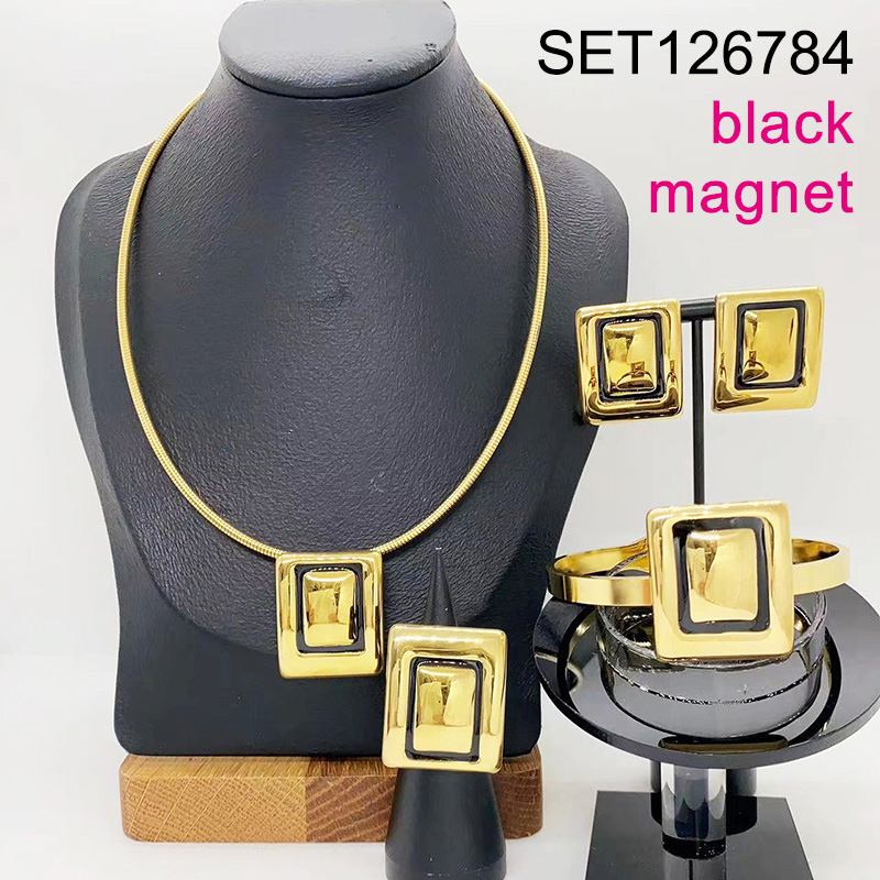 Level B Stainless Steel New Trendy Women Jewelry Black Rectangle Golden Magnet buckle 4pcs SET