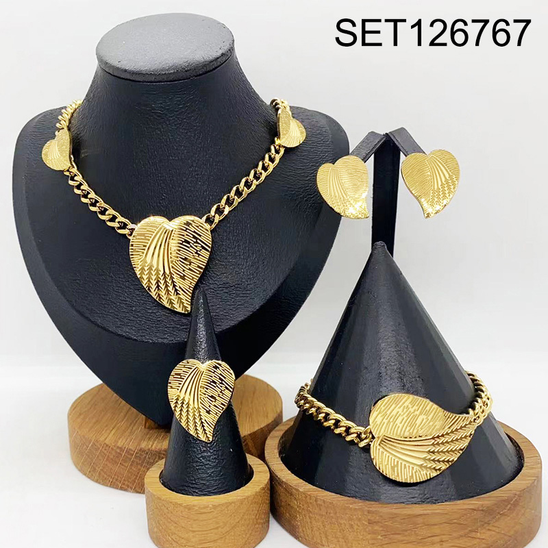 Level B Stainless Steel New Trendy Women Jewelry Heart Golden Valentine's Day 4pcs SET