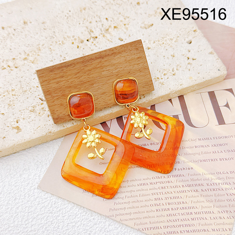 Home > Level B Stainless Steel New Trendy Women Jewelry Flower Square Golden Earrings