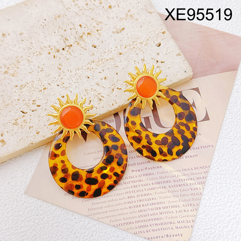 Level B Stainless Steel New Trendy Women Jewelry Round Sun Golden Earrings