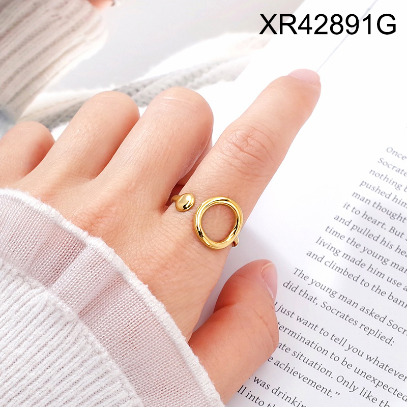 Level A Stainless Steel New Trendy Women Jewelry Oval Golden Open Rings;Ring size can be adjusted freely