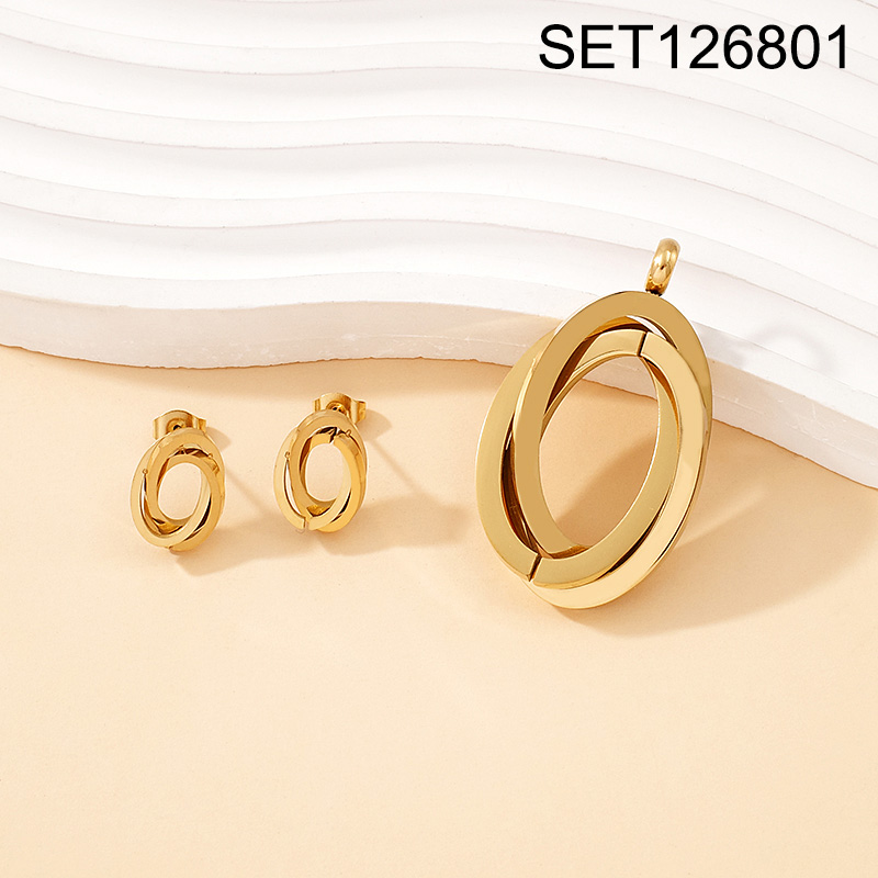 Level B Stainless Steel New Trendy Women Jewelry Oval Golden SET