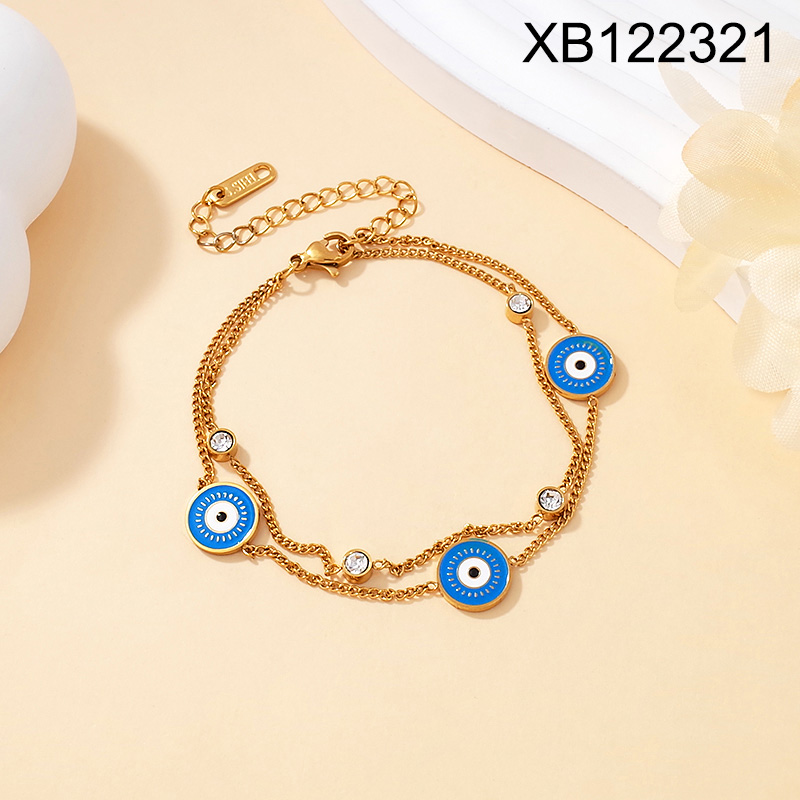 Home > Level B Stainless Steel New Trendy Women Jewelry Two Layers Chain Eye Golden Bracelet