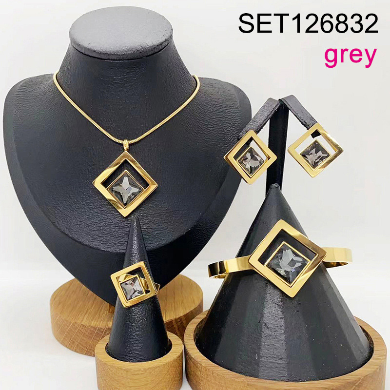 Level B Stainless Steel New Trendy Women Jewelry Grey Glass Square Golden 4pcs SET
