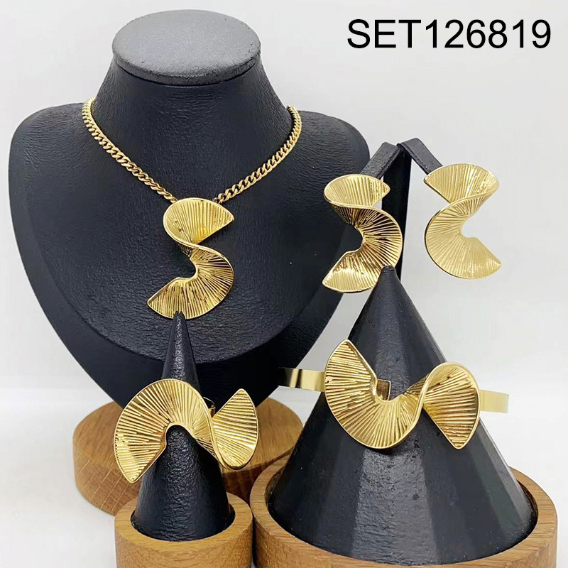 Level B Stainless Steel New Trendy Women Jewelry Golden 4pcs SET