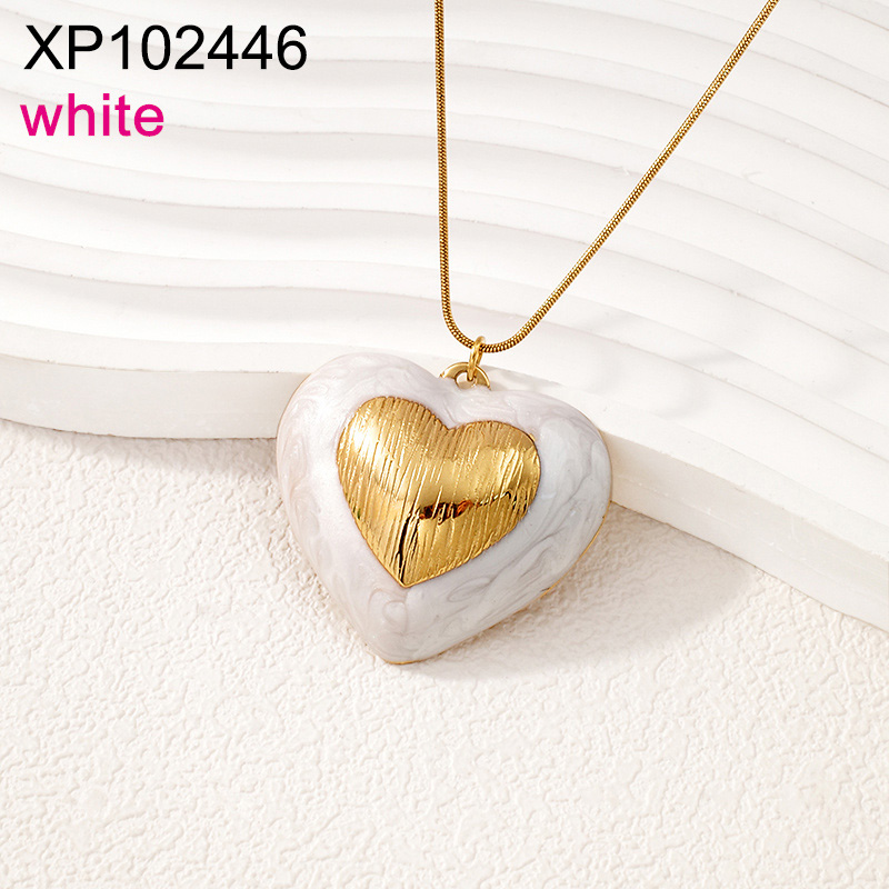 Level B Stainless Steel New Trendy Women Jewelry Drip Oil/Enamel White Heart Golden Valentine's Day Pendant