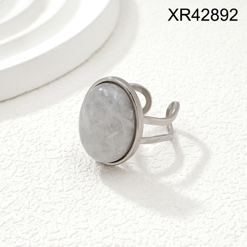 Level B Stainless Steel New Trendy Women Jewelry Oval Natural Stone Steel color Open Rings;Ring size can be adjusted freely