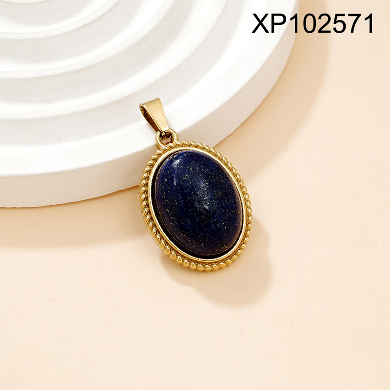 Level B Stainless Steel New Trendy Women Jewelry Oval Natural Stone Golden Pendant