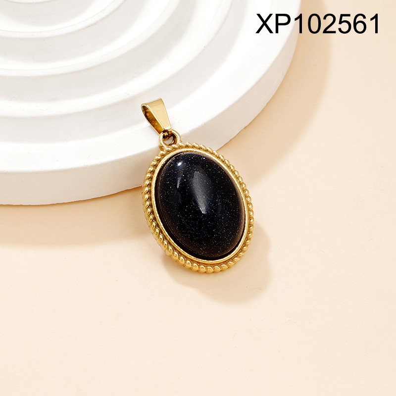 Level B Stainless Steel New Trendy Women Jewelry Oval Natural Stone Golden Pendant