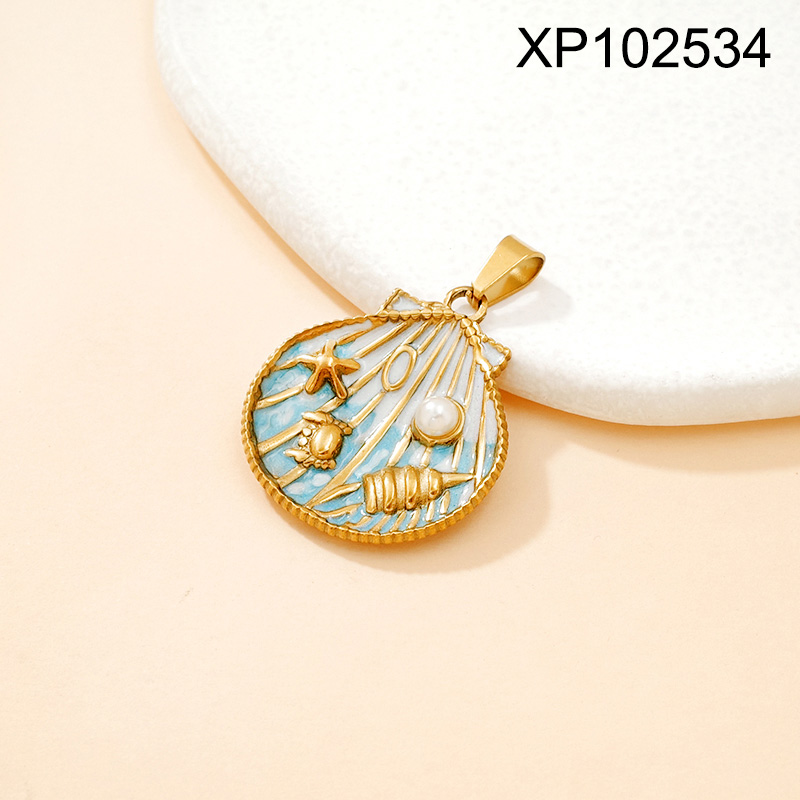 Home > Level B Stainless Steel New Trendy Women Jewelry Summer beach Drip Oil/Enamel Animal Shell Golden Pendant