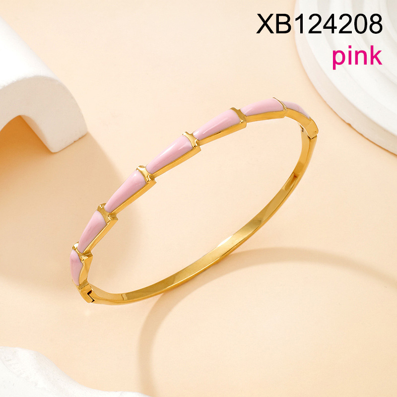 Home > Level B Stainless Steel New Trendy Women Jewelry Drip Oil/Enamel Pink Bamboo Golden Bangle