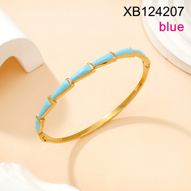 Home > Level B Stainless Steel New Trendy Women Jewelry Drip Oil/Enamel Blue Bamboo Golden Bangle