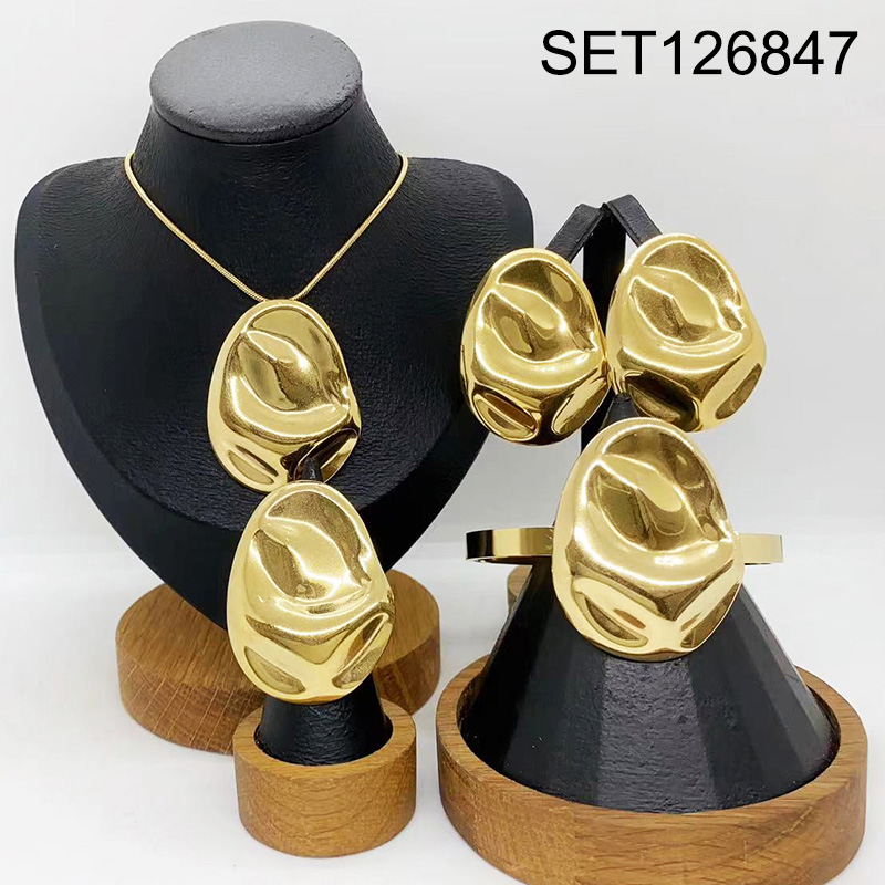 Level B Stainless Steel New Trendy Women Jewelry Water Drip Golden 4pcs SET