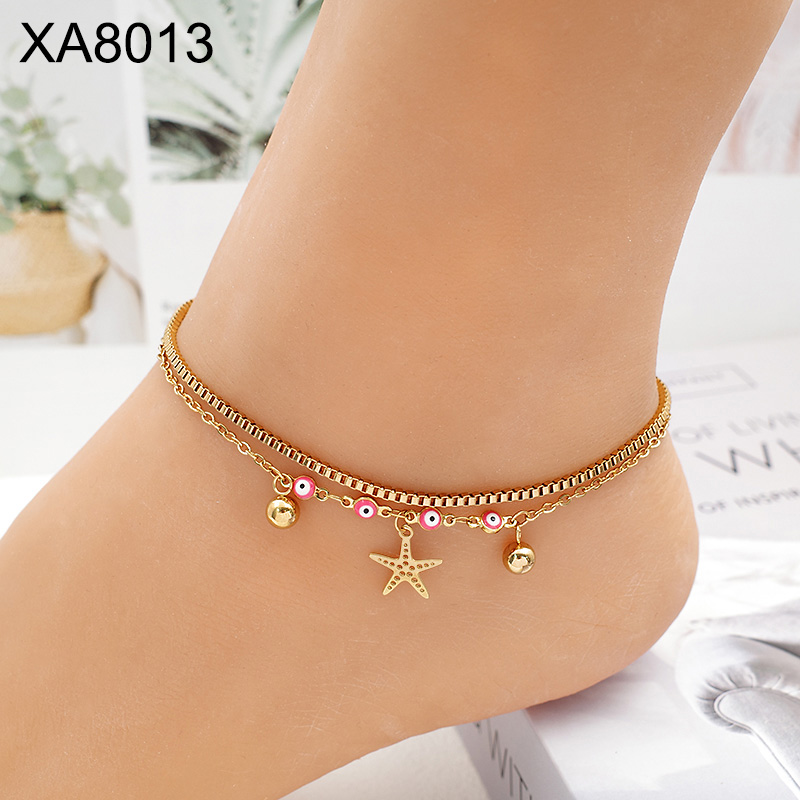 Level B Stainless Steel New Trendy Women Jewelry Two Layers Chain Summer beach Animal Starfish Golden Anklet