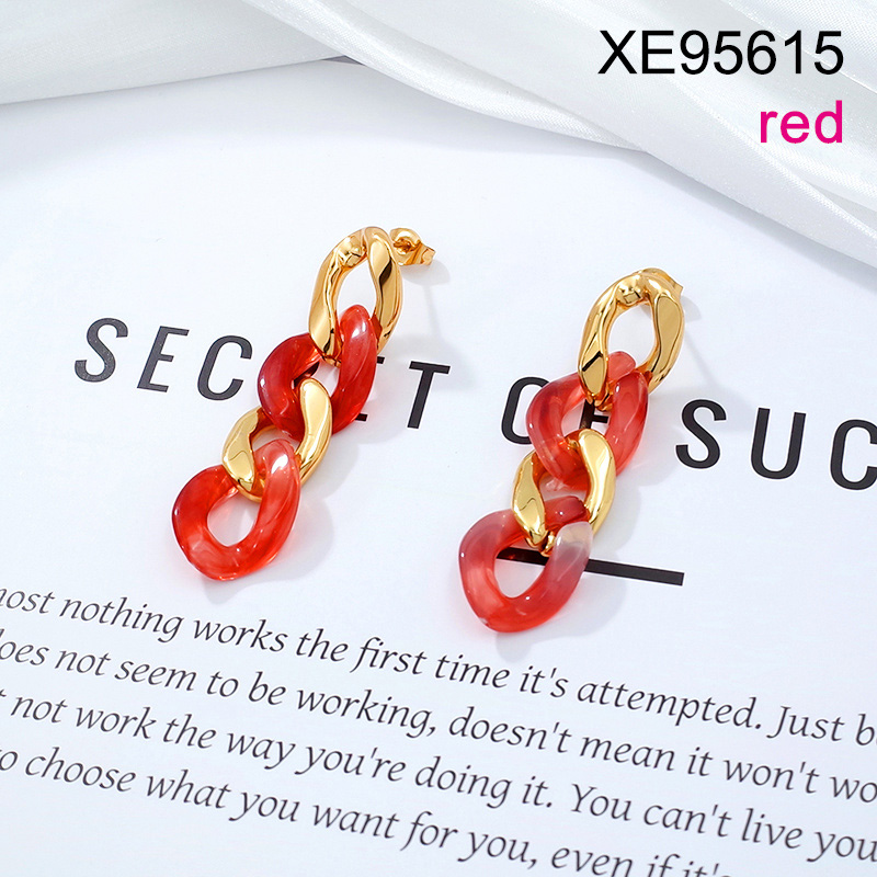Level B Stainless Steel New Trendy Women Jewelry Red Resin Golden Chain Earrings