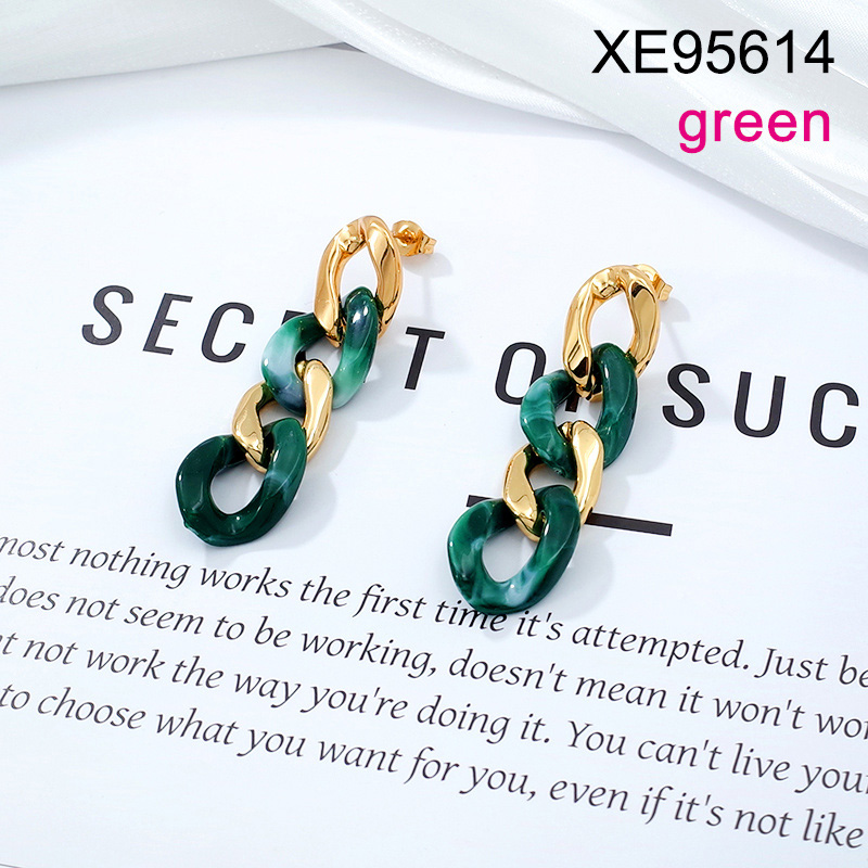 Level B Stainless Steel New Trendy Women Jewelry Green Resin Golden Chain Earrings