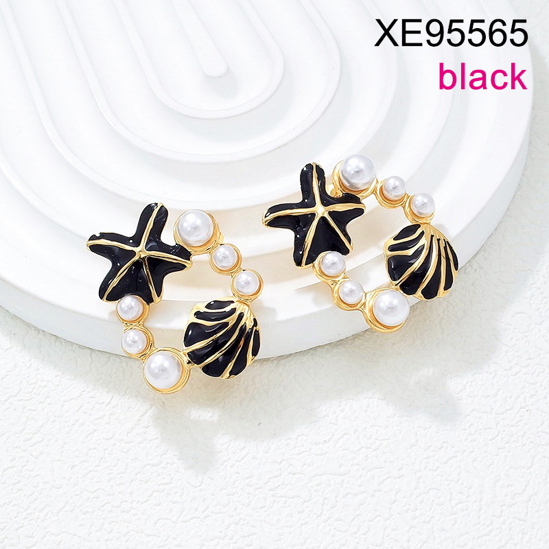 Home > Level B Stainless Steel New Trendy Women Jewelry Pearl Style/Plastic Beads Summer beach Drip Oil/Enamel Black Animal Shell Starfish Golden Earrings
