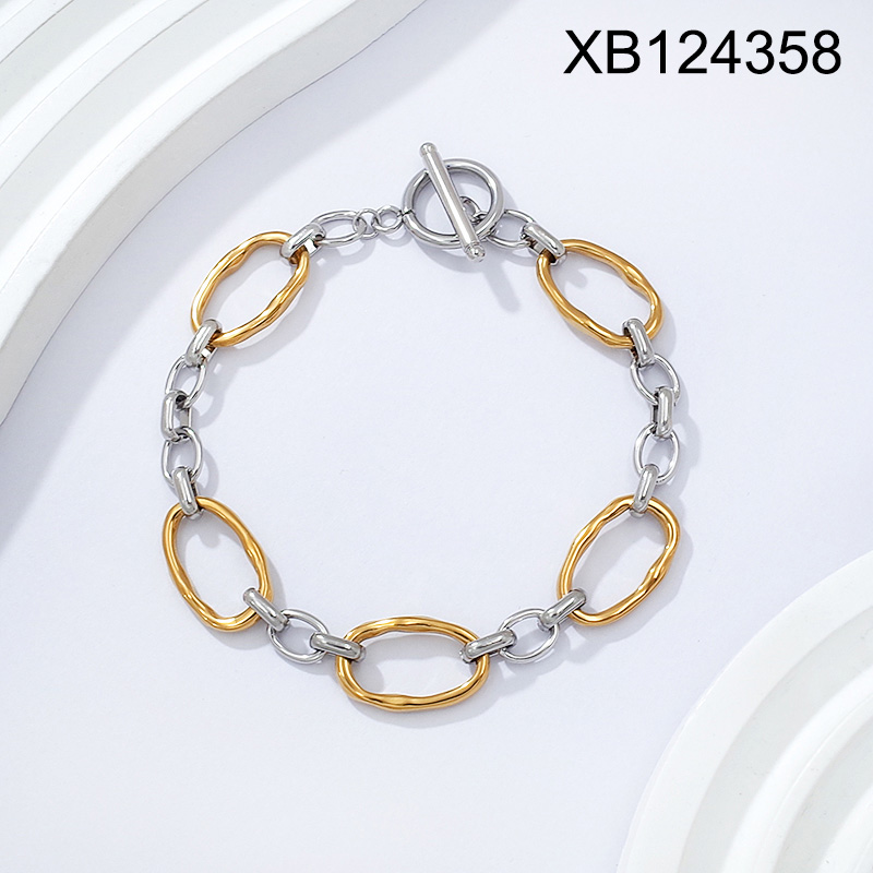 Level B Stainless Steel New Trendy Women Jewelry Oval Two Tone Bracelet