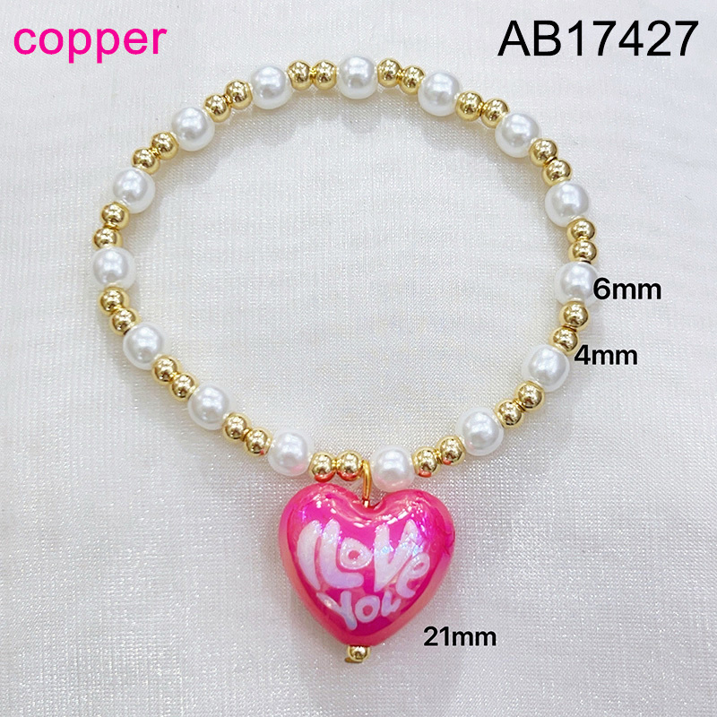 Level B Fashion Jewelry New Trendy Women Jewelry Pearl Style/Plastic Beads Heart Golden Valentine's Day Elastic Bracelet;Material:copper (cobre)