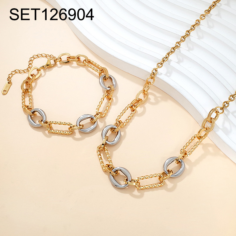 Home > Level B Stainless Steel New Trendy Women Jewelry Geometry Two Tone Chain SET