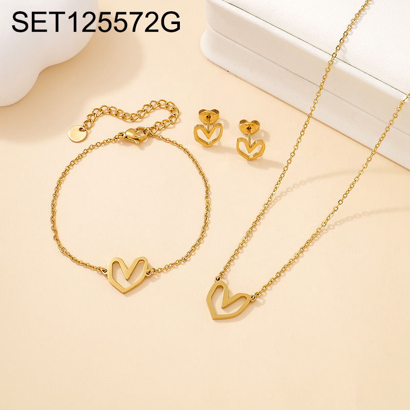 Home > Level A Stainless Steel New Trendy Women Jewelry Heart Golden 3pcs SET