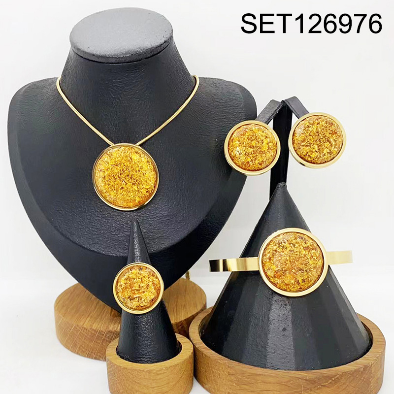 Level B Stainless Steel New Trendy Women Jewelry Round Golden 4pcs SET