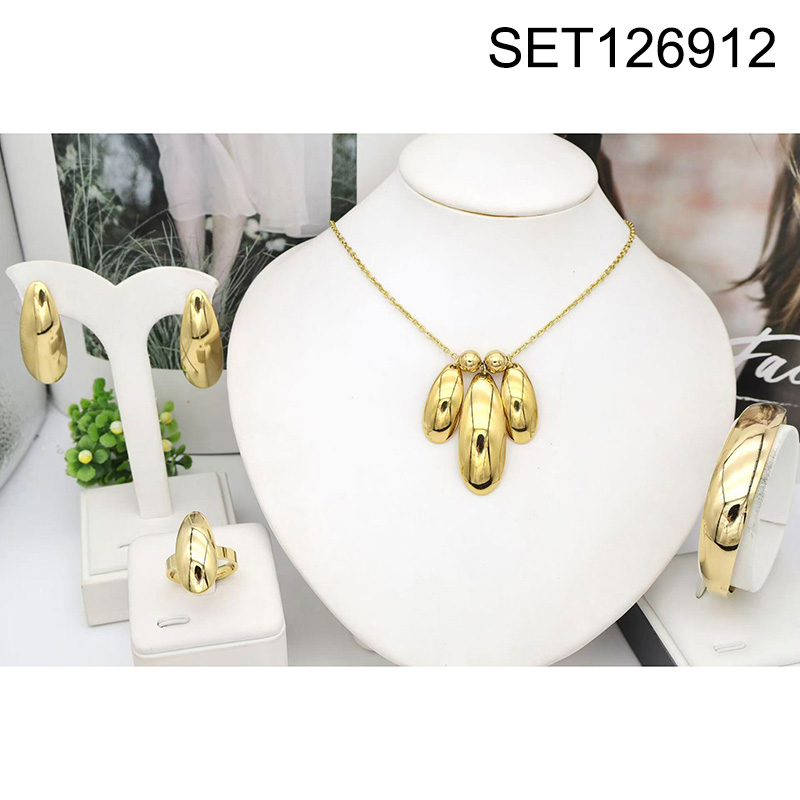 Level B Stainless Steel New Trendy Women Jewelry Water Drip Golden 4pcs SET