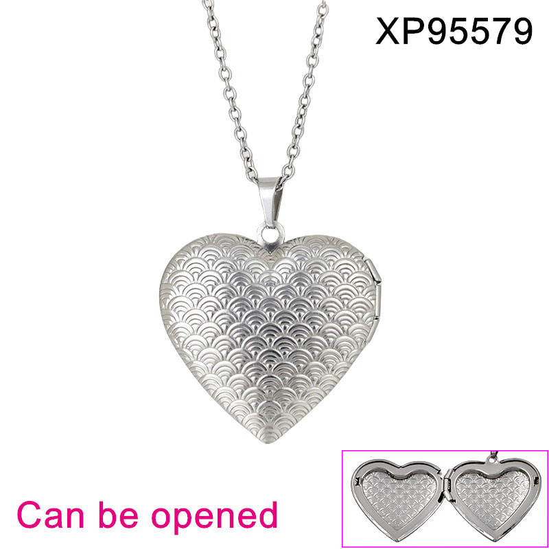 Home > Level B Stainless Steel Jewelry New Trendy Carved Heart Openable Photo Frame Steel color Valentine's Day Pendant