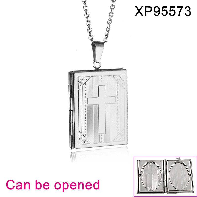 Home > Level B Stainless Steel Jewelry New Trendy Carved Rectangle Openable Photo Frame Pendant