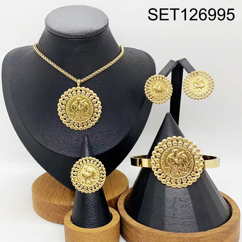 Level B Stainless Steel New Trendy Women Jewelry Round Coin Animal Chicken Golden 4pcs SET