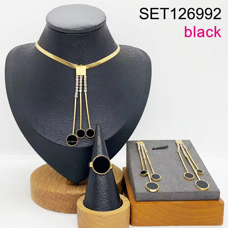 Level B Stainless Steel New Trendy Women Jewelry Black Round Golden 3pcs SET