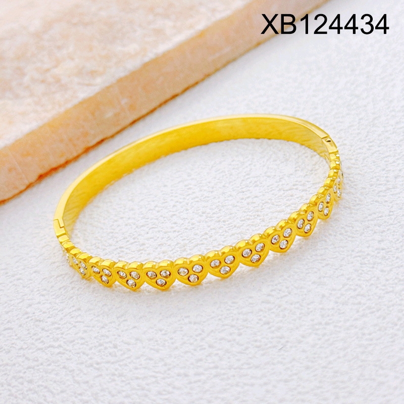 Home > Level B Stainless Steel New Trendy Women Jewelry Heart Golden Valentine's Day Bangle