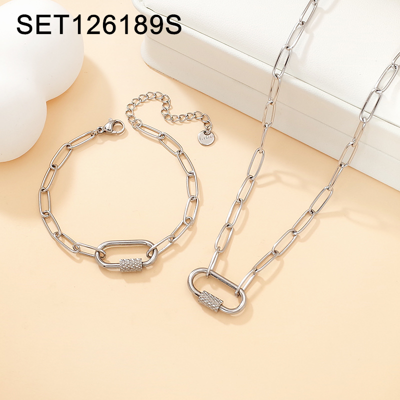 Home > Level A Stainless Steel New Trendy Women Jewelry Steel color Chain SET