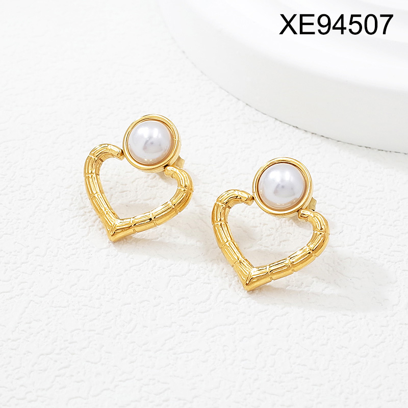 Level B Stainless Steel New Trendy Women Jewelry Pearl Style/Plastic Beads Geometry Golden Earrings