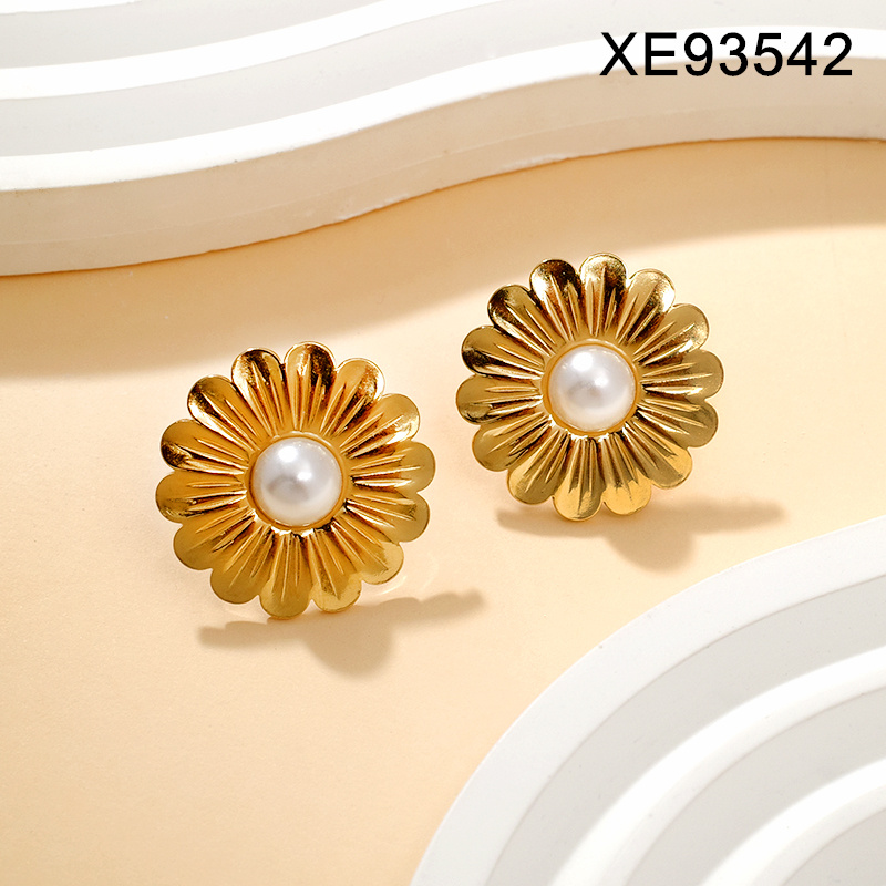 Level B Stainless Steel New Trendy Women Jewelry Pearl Style/Plastic Beads Flower Golden Earrings