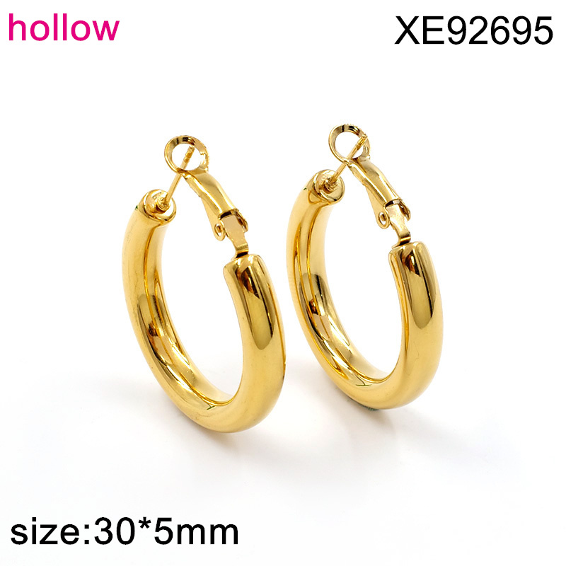 Home > Level B Stainless Steel New Trendy Women Jewelry Hollow Round Golden Earrings