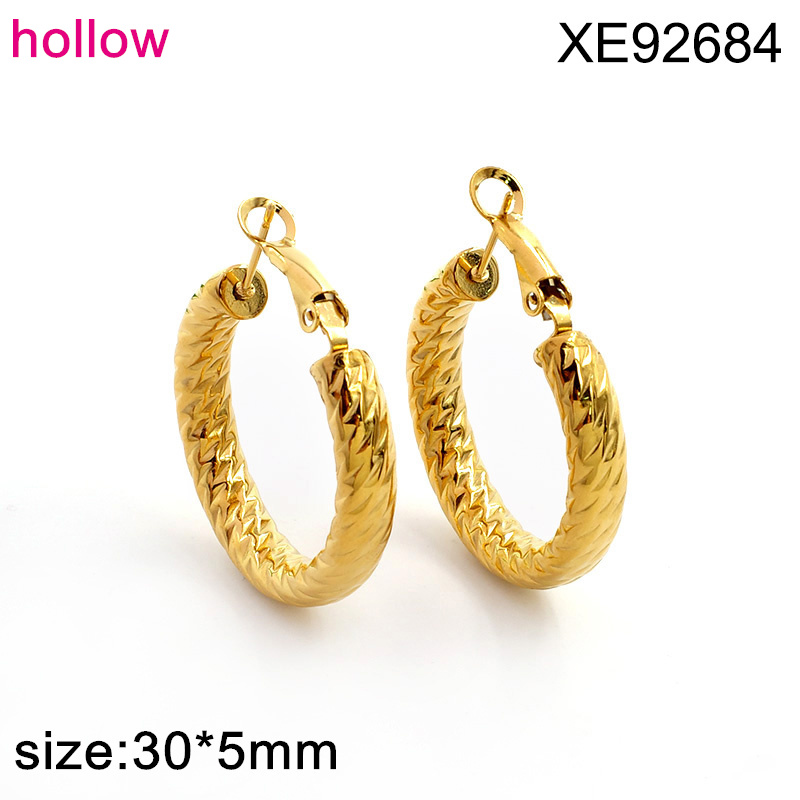 Level B Stainless Steel New Trendy Women Jewelry Hollow Round Golden Earrings