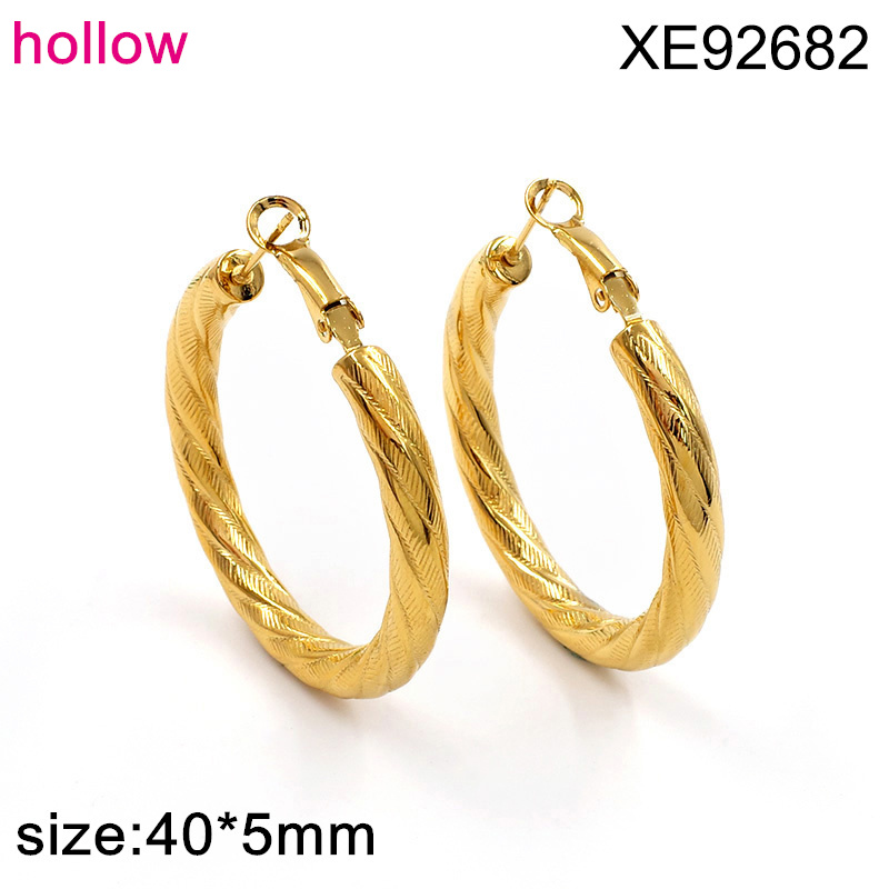 Level B Stainless Steel New Trendy Women Jewelry Hollow Round Golden Earrings